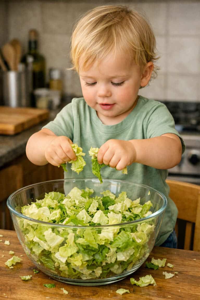 If you have lettuce that needs to be used, put it in a bowl. Let kids tear and mix. The texture alone keeps them busy.