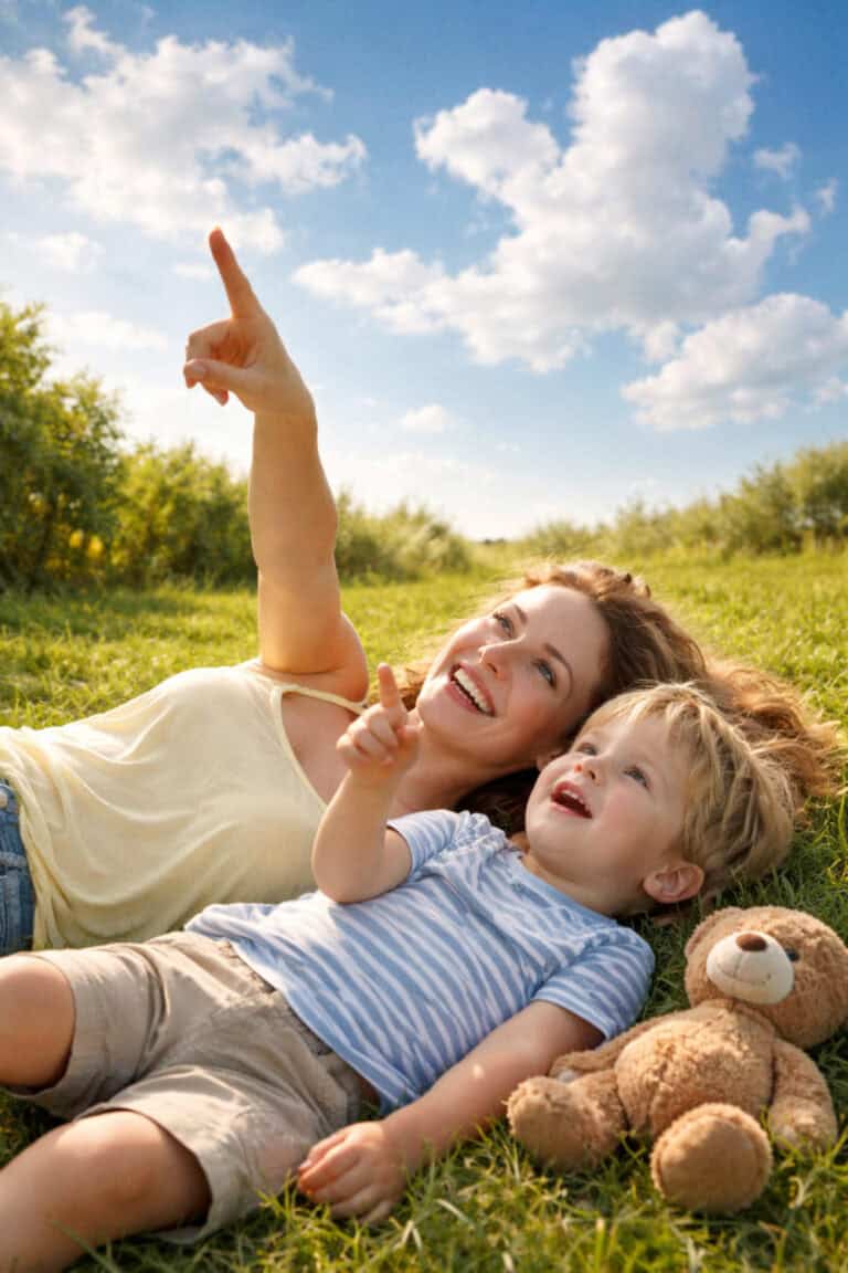 If you lie on a blanket and look up, the sky becomes entertainment. Preschoolers love naming shapes.
