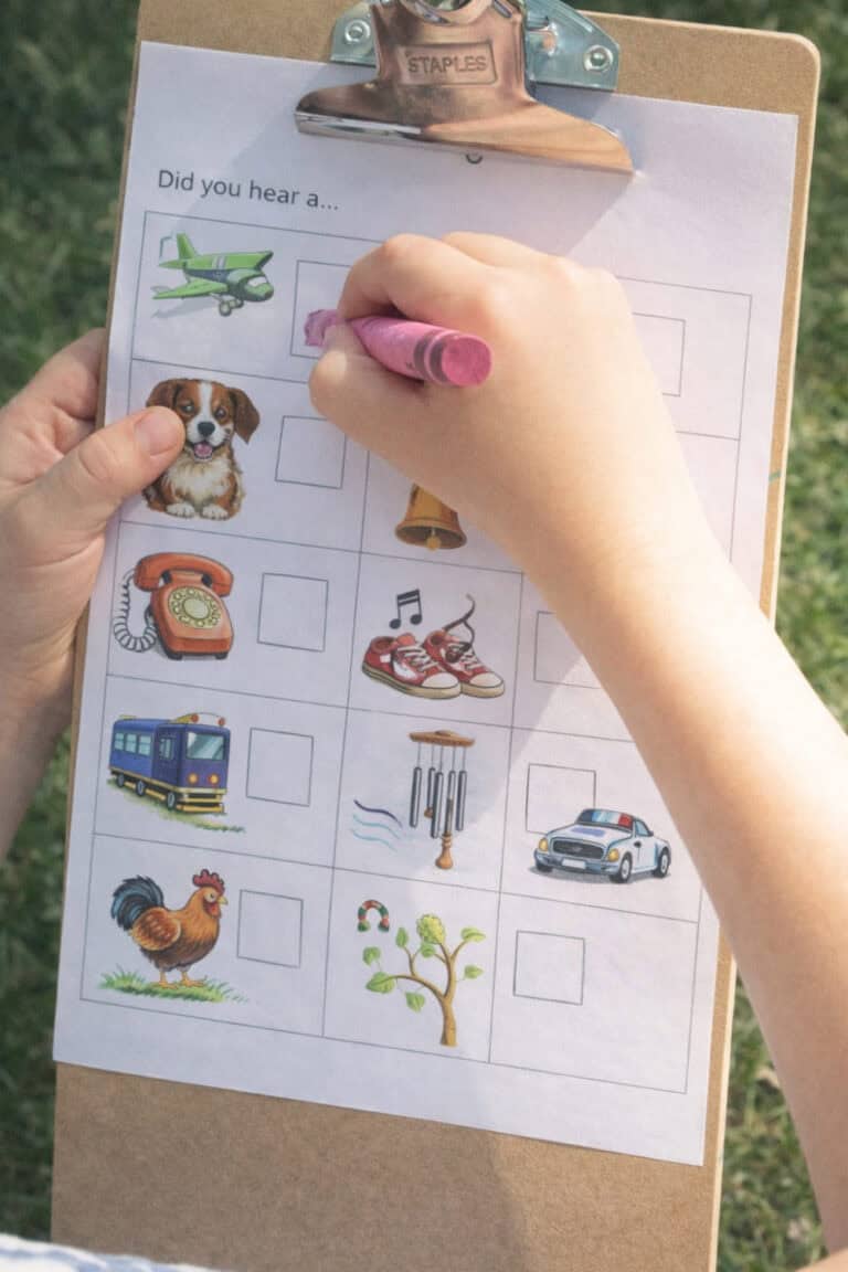 If you walk slowly and pause often, you will hear wind, birds, and distant cars. Toddlers love pointing out sounds.
