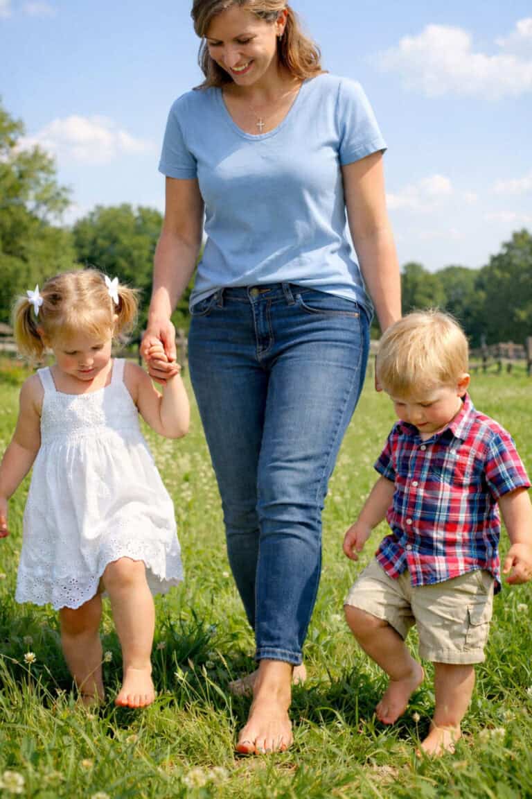 If the weather is nice, take off shoes and walk in the grass. Toddlers notice everything when it touches their feet.