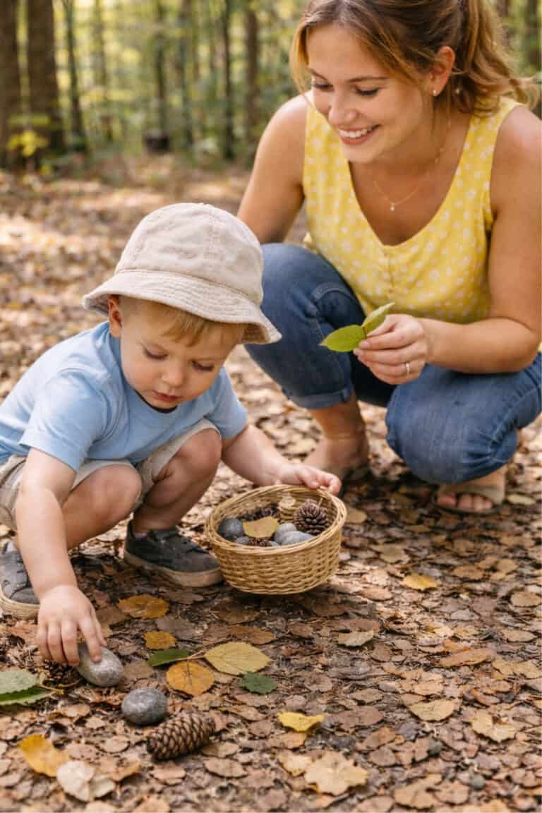 If you have a quick walk in you, collect sticks, rocks, and leaves. Place them in a basket and let kids explore. Preschoolers love sorting by size or texture.