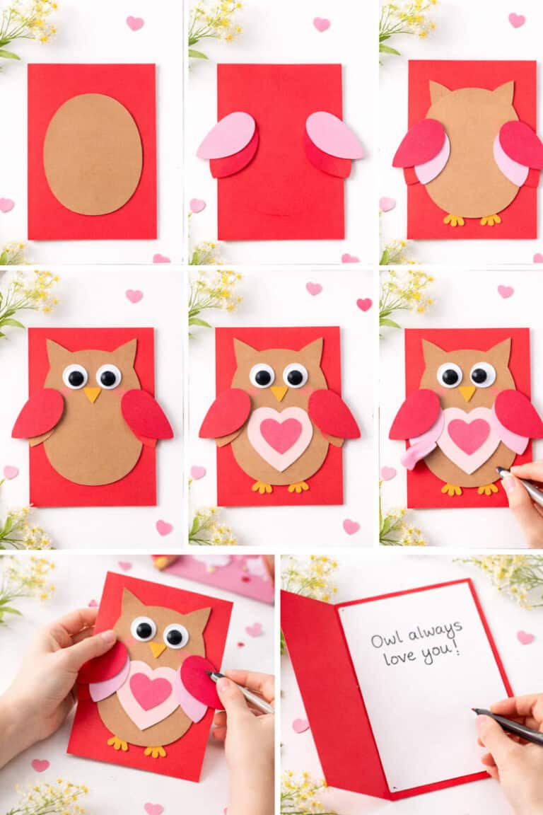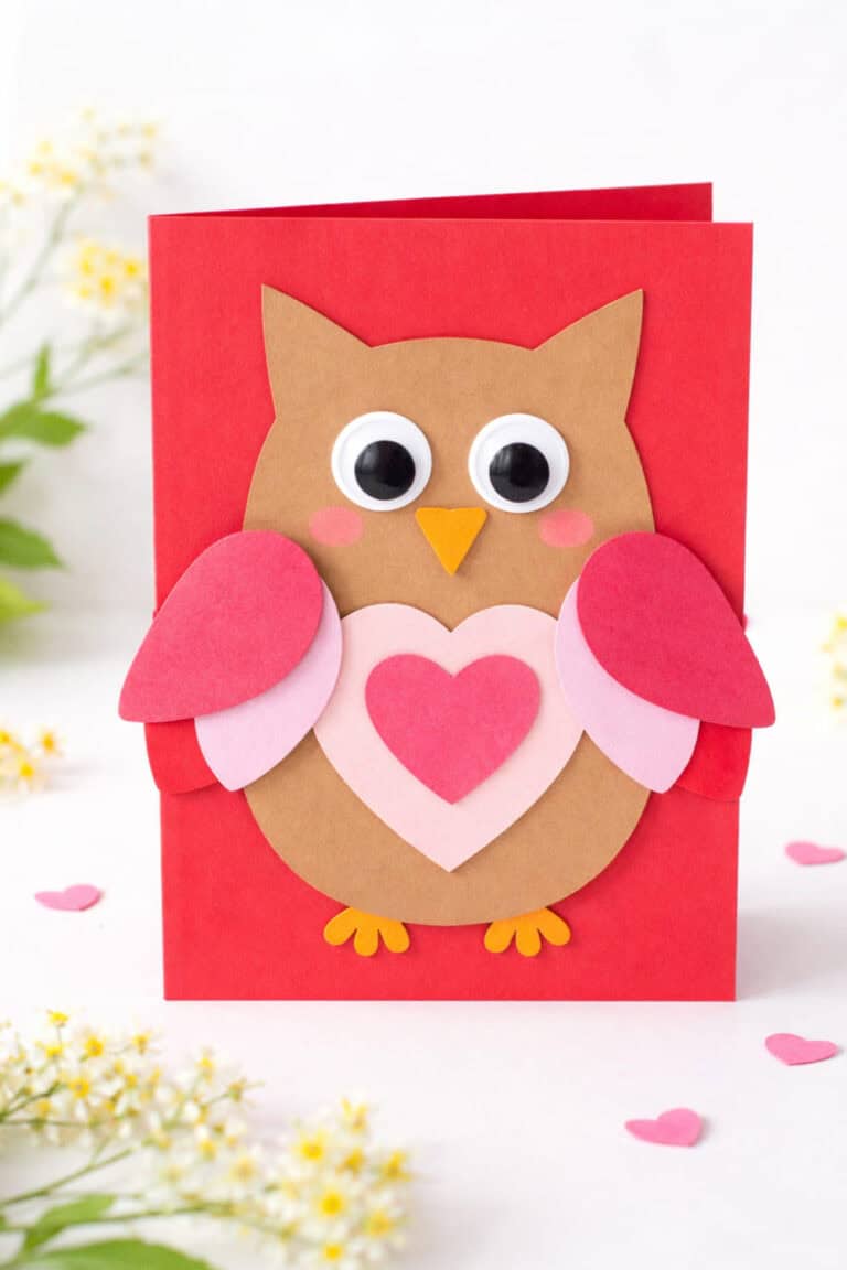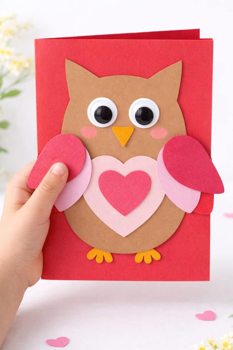 This owl Valentine card uses basic supplies, layered hearts, and a silly little message that always makes parents smile.